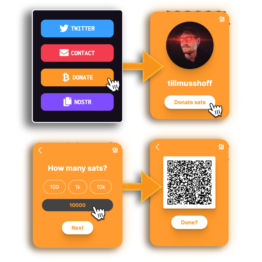 Receiving Bitcoin donations doesn't get easier than that. Just add your lightning address in your profile and you're good to go. Chrome extensions like Alby even automatically recognize there is a lightning address in your bio.